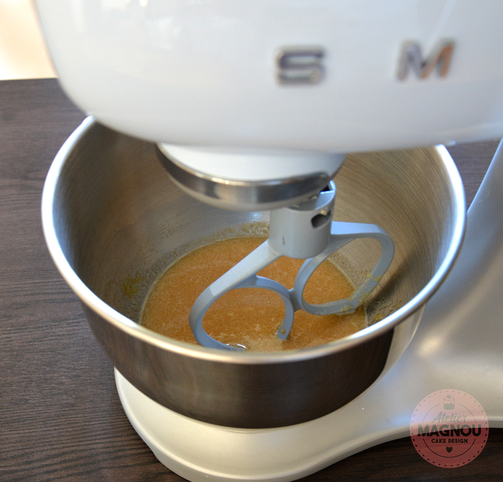 Mezclar en la batidora en la 1ra velocidad el azúcar, los huevos, el licor, la vainilla y las almendras pulverizadas durante 5 minutos.